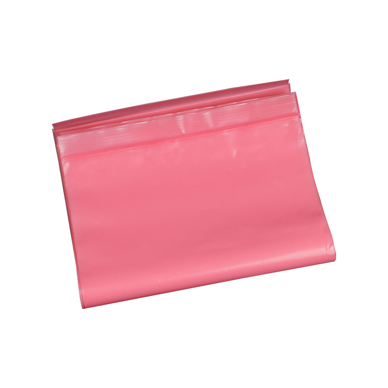 Антистатические экономичные, прозрачные, розовые, толщиной 40 мкм, полиэтиленовые упаковочные пакеты для использования внутри ESD-защищенных зон, с защелкой по короткой стороне.