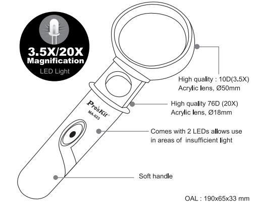Ручная увеличительная лупа MA-023 со светодиодной подсветкой