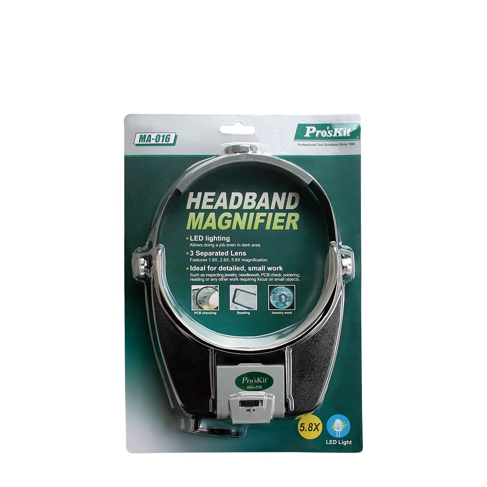 Лупа с головным налобным креплением Pro'skit MA-016 со светодиодной подсветкой, бинокуляры, с увеличением до 5.8Х