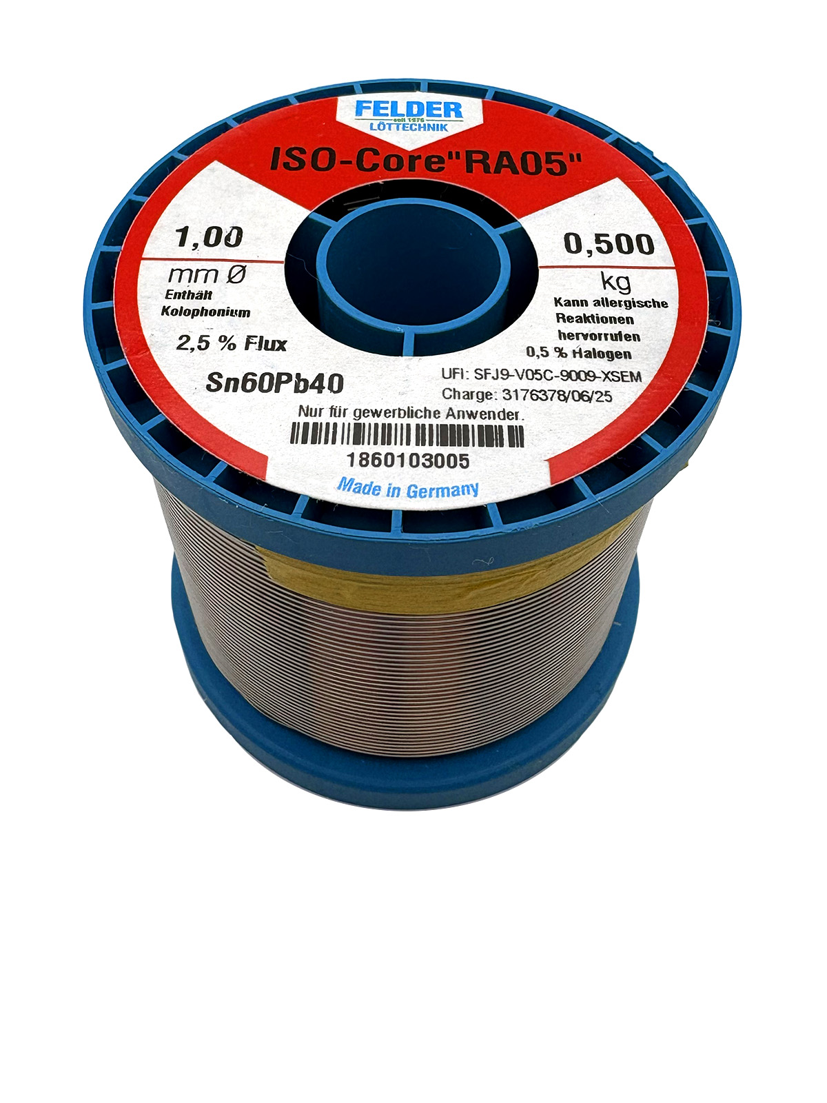 Припой 1860103005 компании Felder с некоррозионным слабоактивированным (содержание галогенов не более 0.5 %) малоостаточным флюсом на основе модифицированной канифоли ROM1, допускающей безотмывочную технологию. Расходный материал необходимый для качественной пайки