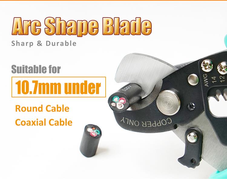 • Резка кабеля: круглый коаксиальный медный кабель до 10.7 мм