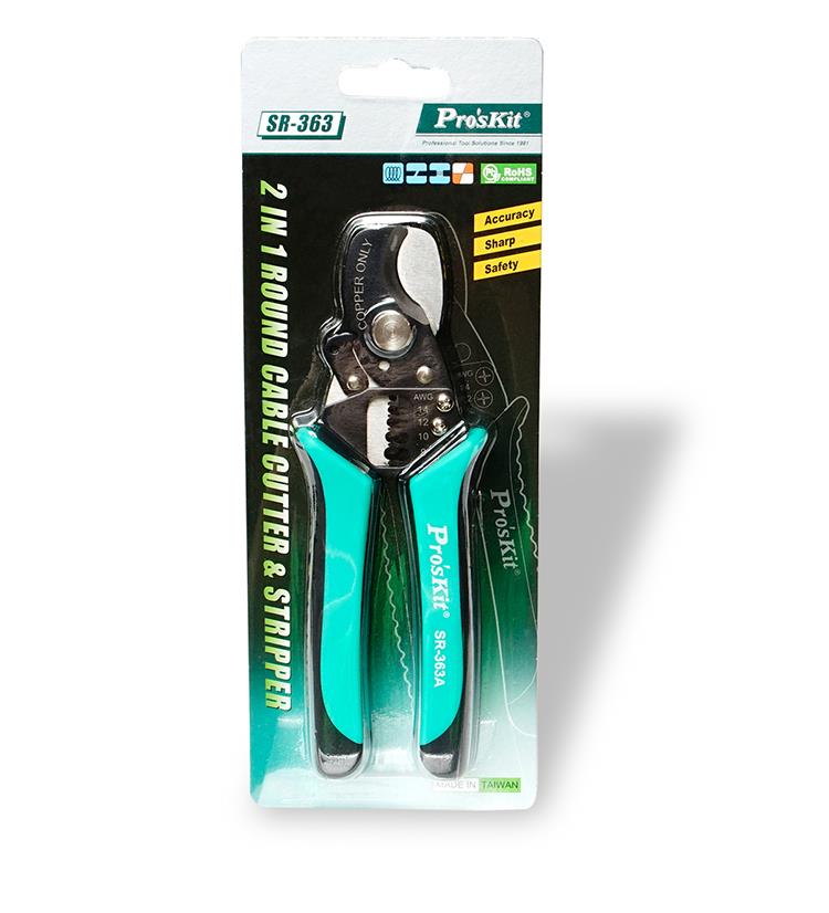 SR-363B ProsKit универсальный кабелерез и стриппер 2 в 1 - идеально подходит для резки многожильного круглого кабеля диаметром до 10.7 мм и зачистки проводов