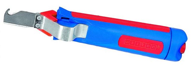 Краткое описание: Кабельный нож с лезвием-крюком Weicon 4-28H применяется для быстрого и аккуратного снятия ПВХ-изоляции круглых кабелей диаметром от 4 до 28 мм с помощью встроенного вращающегося лезвия-эксцентрика, позволяющего выполнять как круговой поперечный, так и продольный рез оболочки кабеля