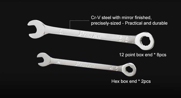 Набор гаечных ключей Proskit HW-609B из 10-ти комбинированных двухсторонних ключей для работы с электронным оборудованием