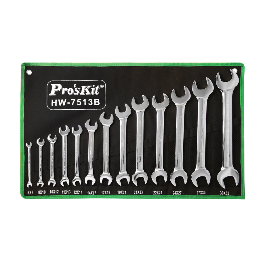 Набор гаечных ключей Proskit HW-7513B - набор открытых двухсторонних ключей из 13 предметов. Применяется для автомобильного, промышленного, домашнего использования и многого другого