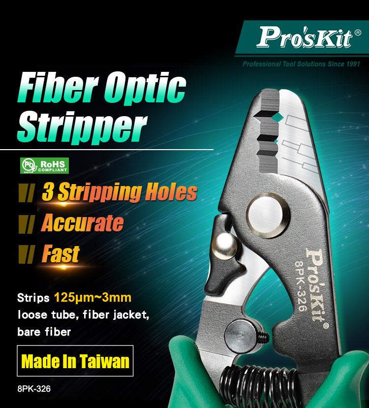 Краткое описание: Инструмент ProsKit 8PK-326 для зачистки оптоволоконного кабеля, зачищает стекловолокно (125 мкм) с изоляцией в 250 мкм. Не оставляет зазубрин и царапин на стекловолокне.