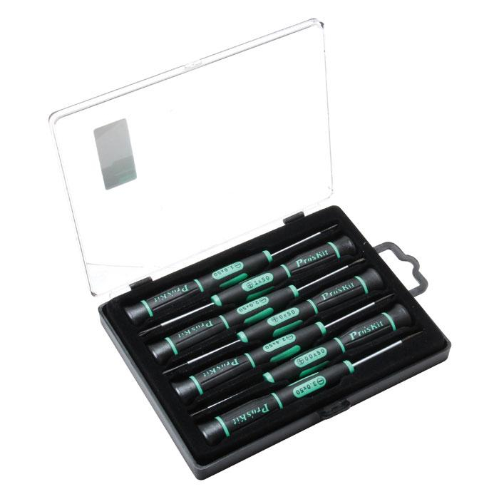 Набор прецизионных отверток Pro'sKit SD-081A для точных работ с легковращающейся шляпкой, состоит из 4 шлицевых отверток и 3 крестовых.