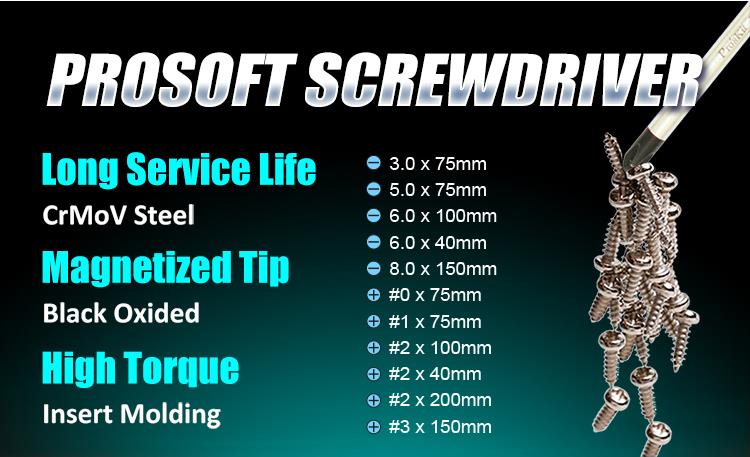Pro-Soft отвертка с мягкой рукояткой 5.0 5x75мм 9SD-202A