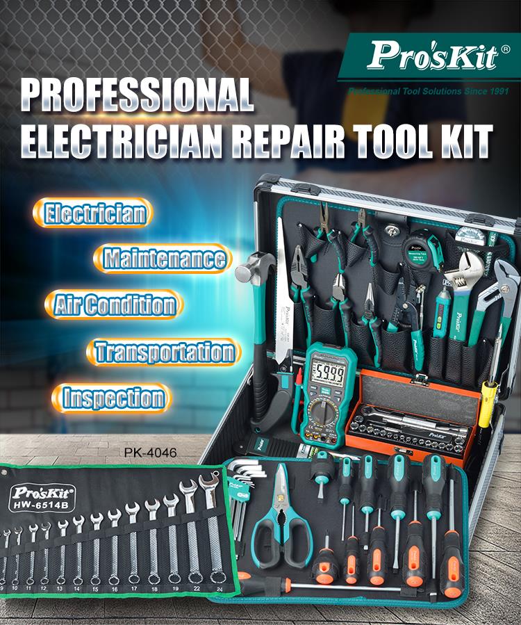 Универсальный набор инструментов PK-4046BM из 32 предметов для технического обслуживания автомобилей, кондиционеров, электрики и домашнего применения «Сделай сам», в высококачественном кейсе с алюминиевой рамкой.